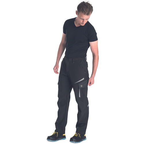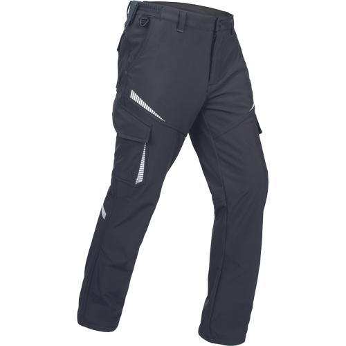 • winter softshell pants with elastic waist • two side pockets • two back pockets with Velcro flaps • two thigh pockets with Velcro flap • reflective detailsStandards