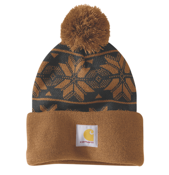 Jacquard Bommelmütze aus Rippstrick