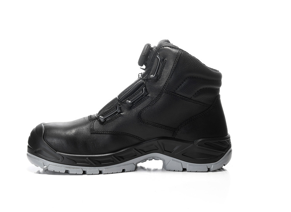 Der Rindlederstiefel jo_ADVANCED Compo BOA® black Mid ESD S3S ist nicht nur eine gepflegte Erscheinung, er ist auch ein robuster Fußschutz der Extraklasse. Warum? Rindleder ist fest, strapazierfähig, speichert die Wärme und behält die Form. Den kann man auch unter extremen Bedingungen einsetzen und er verliert nichts von seiner Stabilität und Kraft. Das einfach zu handhabende BOA® Fit System ermöglicht eine perfekte Anpassung an die Form des Fußes, so dass hier nichts rutschen kann. Man sitzt also jederzeit fest im Sattel, wenn man so will. Die üppige Fersenpolsterung sorgt zudem für einen bequemen und sicheren Rückhalt im Stiefel. Weil das Innenfutter aus Textil so atmungsaktiv ist, bleibt man den ganzen Tag von schwitzigen Rückständen im Stiefel verschont. Da reibt nichts, es können keine Blasen entstehen und die Füße kühlen nicht aus.