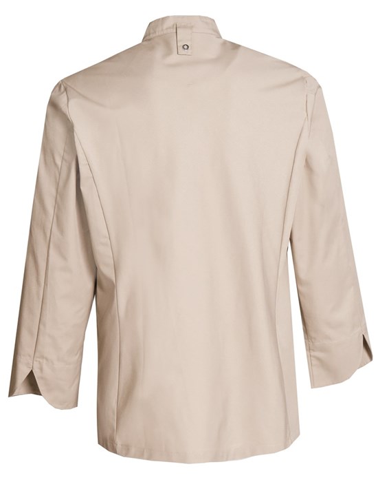 Eine schicke und minimalistische langärmlige Kochjacke in Erdfarben. Eignet sich für Herren sowie Frauen. Ein ergonomisches Design macht die Jacke sehr funktionell und angenehm zu tragen.
