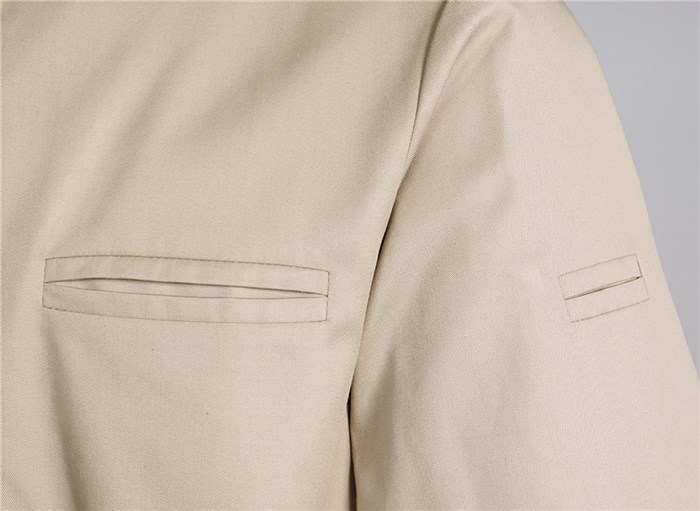 Sie hat verdeckte Druckknöpfen vorne, um einen minimalistischen Look zu betonen, und ist mit einer diskreten und eleganten praktische Paspeltasche an der Brust. Unten gibt es Schlitze für optimale Bewegungsfreiheit.