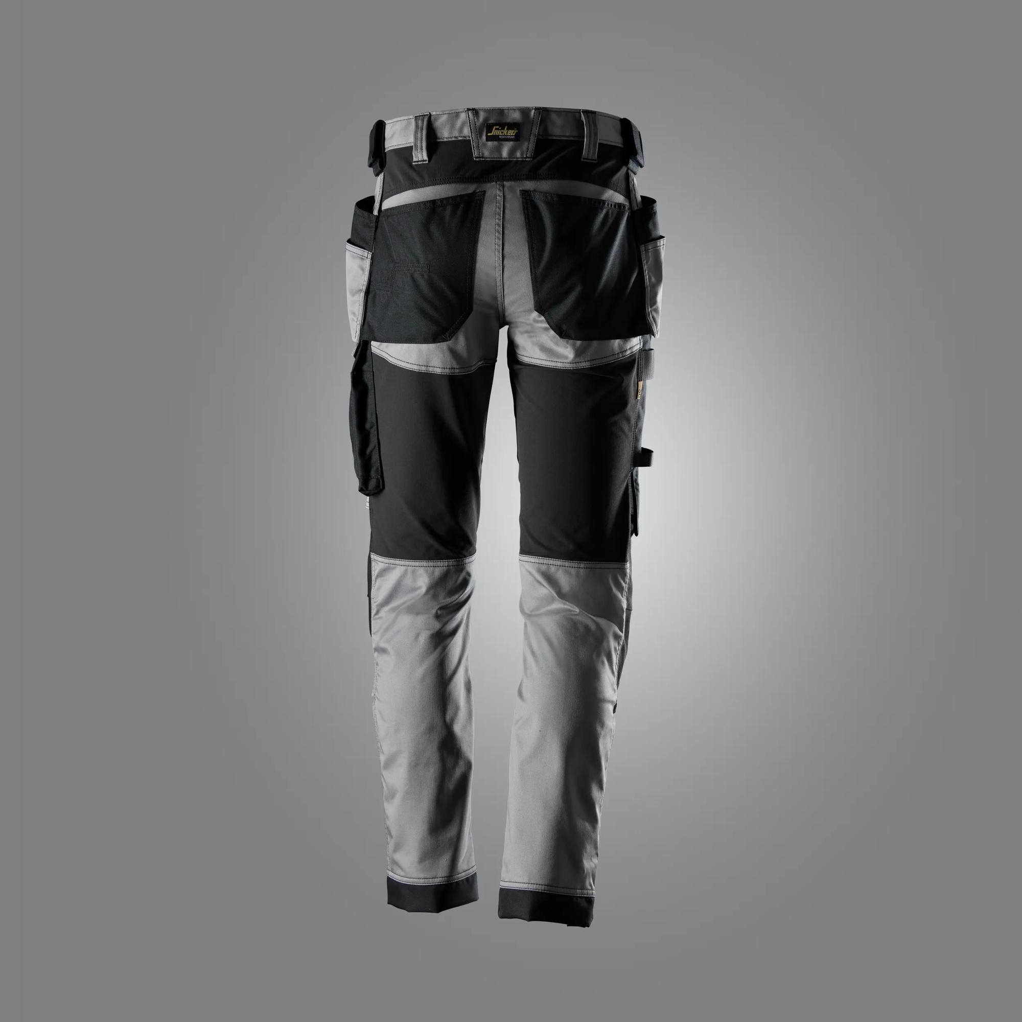 Mehrzweck-Arbeitshose aus Stretchgewebe. Für mehr Flexibilität und Bewegungsfreiheit verfügt die Hose über einen ergonomischen Beinschnitt und 4-Wege-Stretcheinsätze hinten. CORDURA®-verstärkte KneeGuard™-Taschen gewährleisten zusätzlichen Schutz und Haltbarkeit. Verstärkte Holster-, Zollstock- und Cargotaschen für sicheres Verstauen halten Werkzeug immer griffbereit. Schlank geschnittene Hosenbeine.