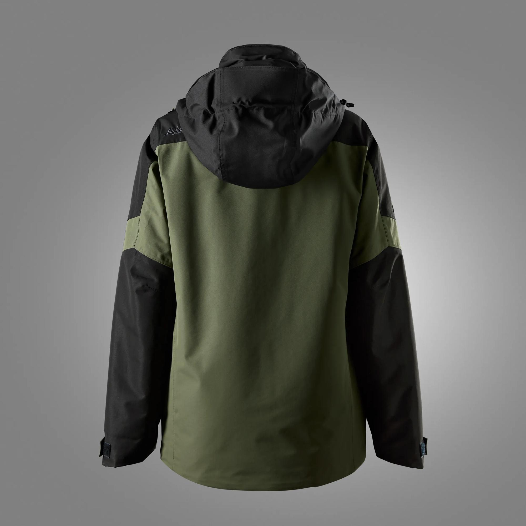 Diese vielseitige Jacke ist wärmeisolierend, wasserdicht und im Schnitt bequem an die weibliche Form angepasst. Sie ist leicht, winddicht sowie vollständig gefüttert und bietet verlässlichen Schutz bei Nässe und Wind. Das atmungsaktive, zweilagige, wasserdichte Gewebe bietet voll versiegelte Nähte und die Jacke hat ergonomisch geschnittene Ärmel für ein Plus an Bewegungsfreiheit. Die abnehmbare, verstellbare Kapuze kann in den Kragen eingerollt werden, und der 2-Wege-Frontreißverschluss bietet eine flexible Belüftung. Der verlängerte Rücken sorgt für Schutz und zusätzliche Abdeckung, während Kordelzüge an Kapuze und Saum eine individuelle Passform ermöglichen. Des Weiteren lassen sich in mehreren Innen- und Außentaschen die wichtigsten Utensilien griffbereit und trocken aufbewahren. Nach DIN EN 342 und DIN EN 343 zertifiziert.