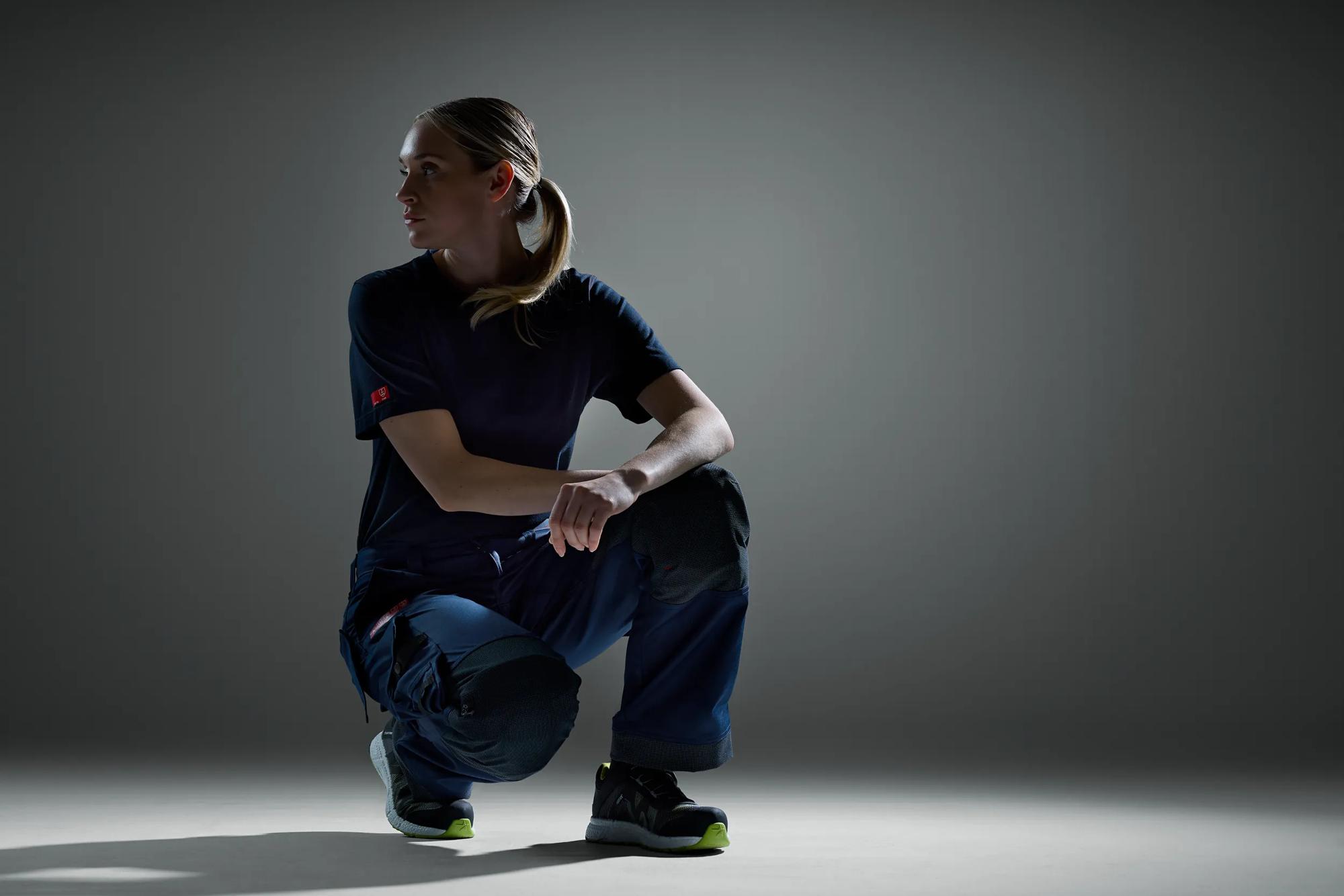 Weiches und vielseitiges T-Shirt mit Rundhalsausschnitt für Damen, geeignet für Arbeiten mit Anforderungen an Flammschutz und Antistatik. Das T-Shirt aus einem strapazierfähigen, weichen und bequemen Modacryl-Baumwoll-Gemisch kann als Basisschicht oder als eigenständiges Kleidungsstück getragen werden. Der weiche, marineblaue Rippkragen sorgt für Komfort. Regular Fit. Schlitz in den Seitennähten. Das pflegeleichte Gewebe ist knitterarm und kann im Wäschetrockner getrocknet werden. Das Material ist für Lichtbögen mit einem ELIM-Wert von 6,5 cal/cm² und APC 1 zertifiziert. Das Material ist nach OEKO-TEX® Standard 100 zertifiziert. Viel Platz für Firmenlogos.