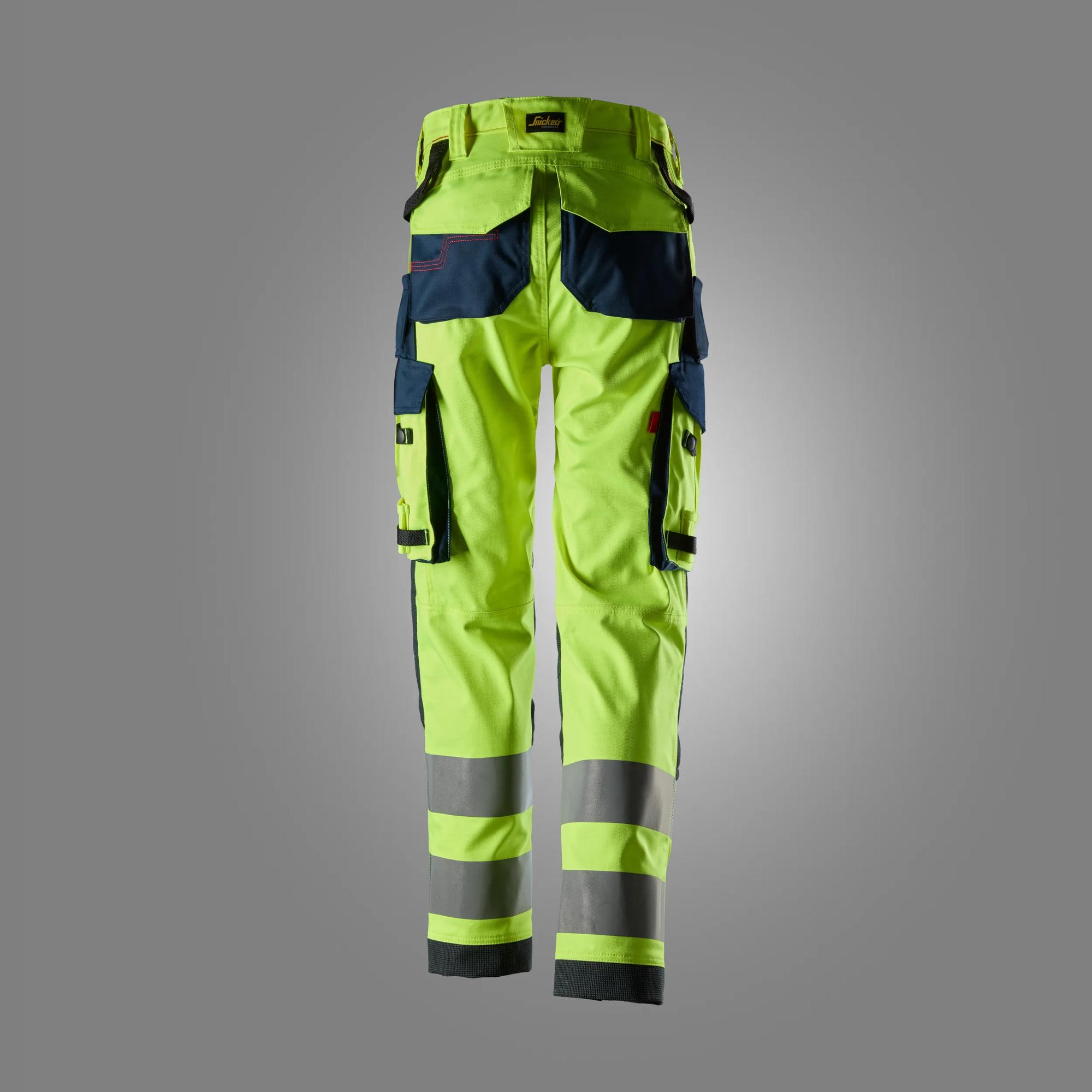 2-Wege-Stretchhose für Damen, die zuverlässigen Schutz in risikoreichen Arbeitsbereichen und gefährlichen Umgebungen bietet, in denen Schutzkleidung erforderlich ist. Die Hose bietet einen inhärenten Hitze- und Flammschutz. Schutz vor Lichtbögen und mit antistatischen Eigenschaften. Nach Schweißschutzklasse 1 zertifiziert. Die Hose schützt auch vor leichteren Chemikalien gemäß EN ISO 13034 PB[6]. Darüber hinaus sorgen heißversiegelte Reflektoren zusammen mit fluoreszierendem Material für eine Sichtbarkeit der Warnschutzklasse 2, wodurch eine erhöhte Sicherheit bei schwachen Lichtverhältnissen und in Hochrisiko-Umgebungen erzielt wird. Das 3/1-Twill-Gewebe sorgt für Langlebigkeit und der Modacryl-Stretchstoff bietet jede Menge Komfort. Zwickel im Schritt für mehr Komfort und Bewegungsfreiheit. Ergonomisch geschnittene Hosenbeine sorgen für Komfort, und das System KneeGuard™ Pro bietet zuverlässigen Knieschutz. Verstärkungen aus einem Aramid/Cordura®-Gemisch an Knien und Beinabschlüssen. Zwei praktische Seitentaschen und zwei Gesäßtaschen mit Balg und Klappen. Unsere klassischen gleich großen Beintaschen bieten sicheren und dauerhaften Stauraum, und die mit DuPont™ Kevlar® verstärkte Linealtasche ermöglicht die Aufbewahrung scharfer Werkzeuge wie Schraubendreher. Die ebenso leicht zugänglichen Beintaschen umfassen eine große Balgtasche mit Handyfach im Inneren, Stifttasche und Messerhalter. Abnehmbarer ID-Ausweishalter in der linken Beintasche. Doppelte Werkzeughalter in der Taille. Aufhänger im Rücken Das Material ist nach OEKO-TEX® Standard 100 zertifiziert. Viel Platz für Firmenlogos.