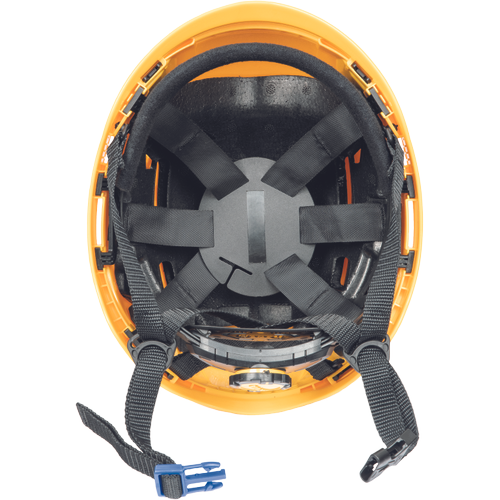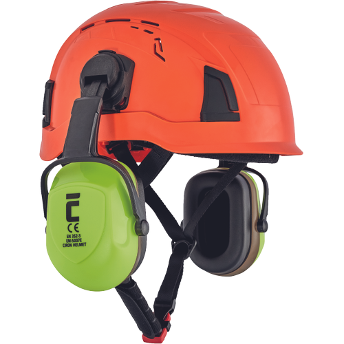 Helmeigenschaften: Wechselgurtzeug, Integriertes Schweißband, Integriertes Umhängeband, Steckplatz für Gehörschutz