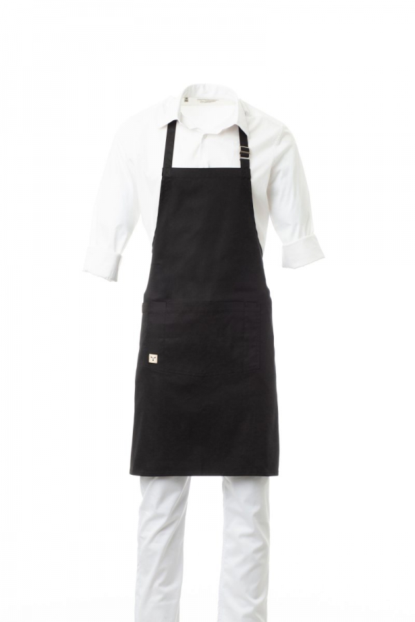 Unisex-Multifunktionsschürze aus Baumwolltwill und Lycra® T400®, Latz mit Schnalle verstellbar, hervorragende elastische und atmungsaktive Eigenschaften. Mittige Tasche mit Fächern und Schlaufe für das Küchentuch. Maße: 80 x 83 cm